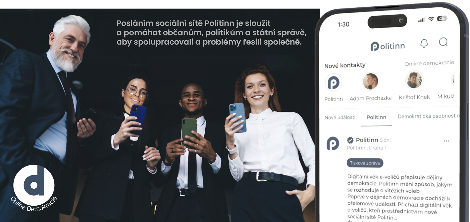 Moderní forma politického systému „ONLINE DEMOKRACIE“ představuje nový model řízení společnosti a státu. Funguje na principu mobilní aplikace Politinn, kterou si občané mohou stáhnout do svého telefonu. Každý e-volič tak může od státu získat vyšší bezpečnostní, sociální a ekonomické záruky, pokud v politickém a veřejném životě uplatňuje své vlastní názory a postoje.